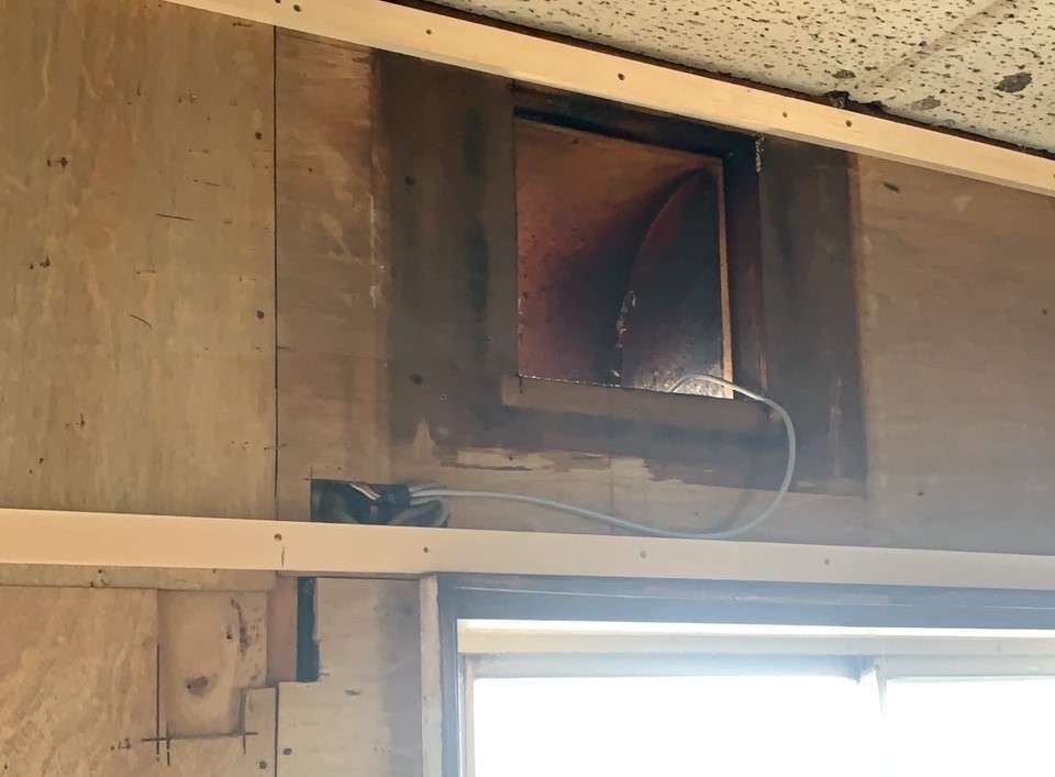 委託工事:キッチンの入替工事に伴い、IHの専用回路とキッチン廻りの電気配線の移設などを行いました。レンジフードの既設開口を上手に利用することになりました。