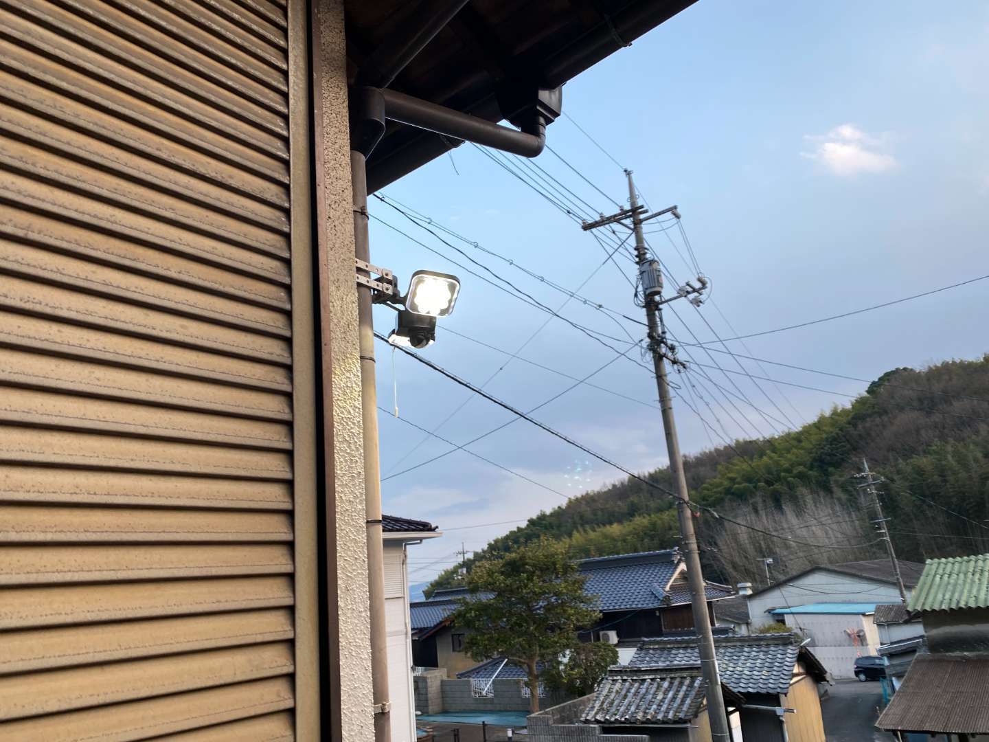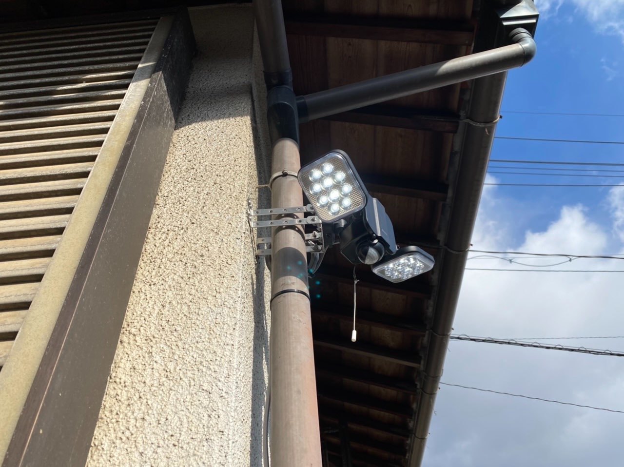 付近に街路灯が無く、階段が暗くて危ないとの事で、センサーライトの取付けの依頼です。